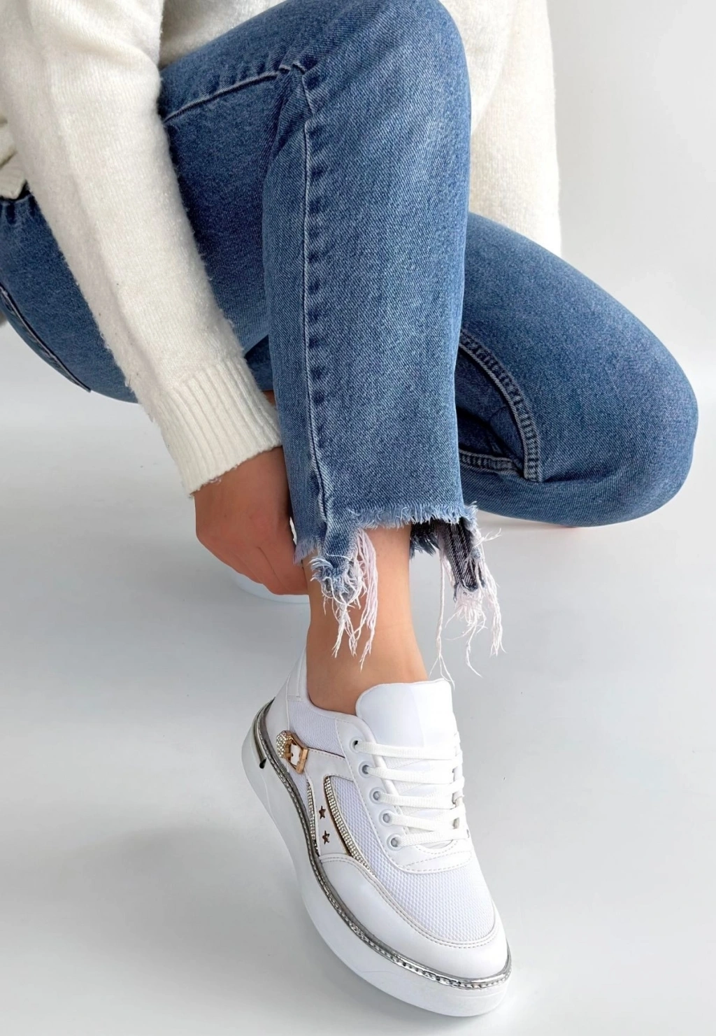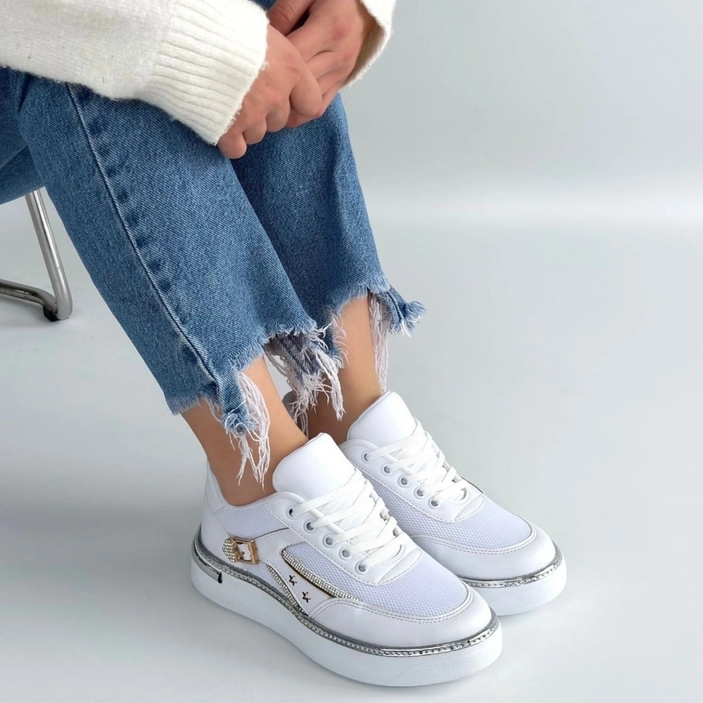 • Junda Beyaz Cilt Bağcıklı Spor Ayakkabı