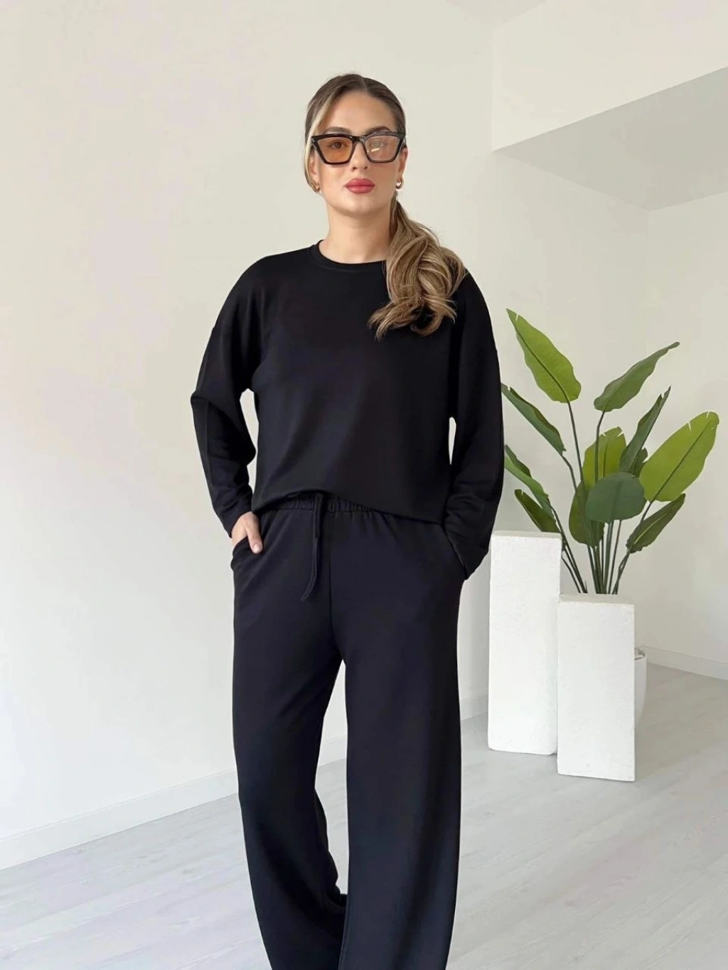 şık ve rahat tasarımıyla öne çıkan Siyah Kollu Modal Takım, kadın giyim koleksiyonunda yerini alıyor.