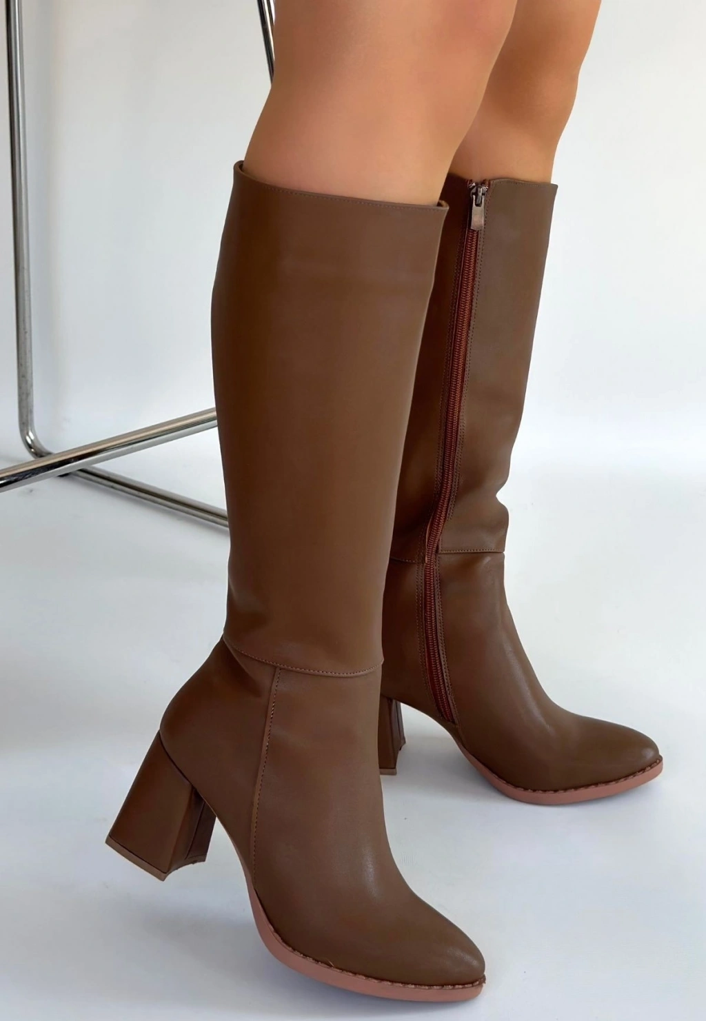 Detay : Topuklu Yandan Fermuarlı Diz Altı Çizme