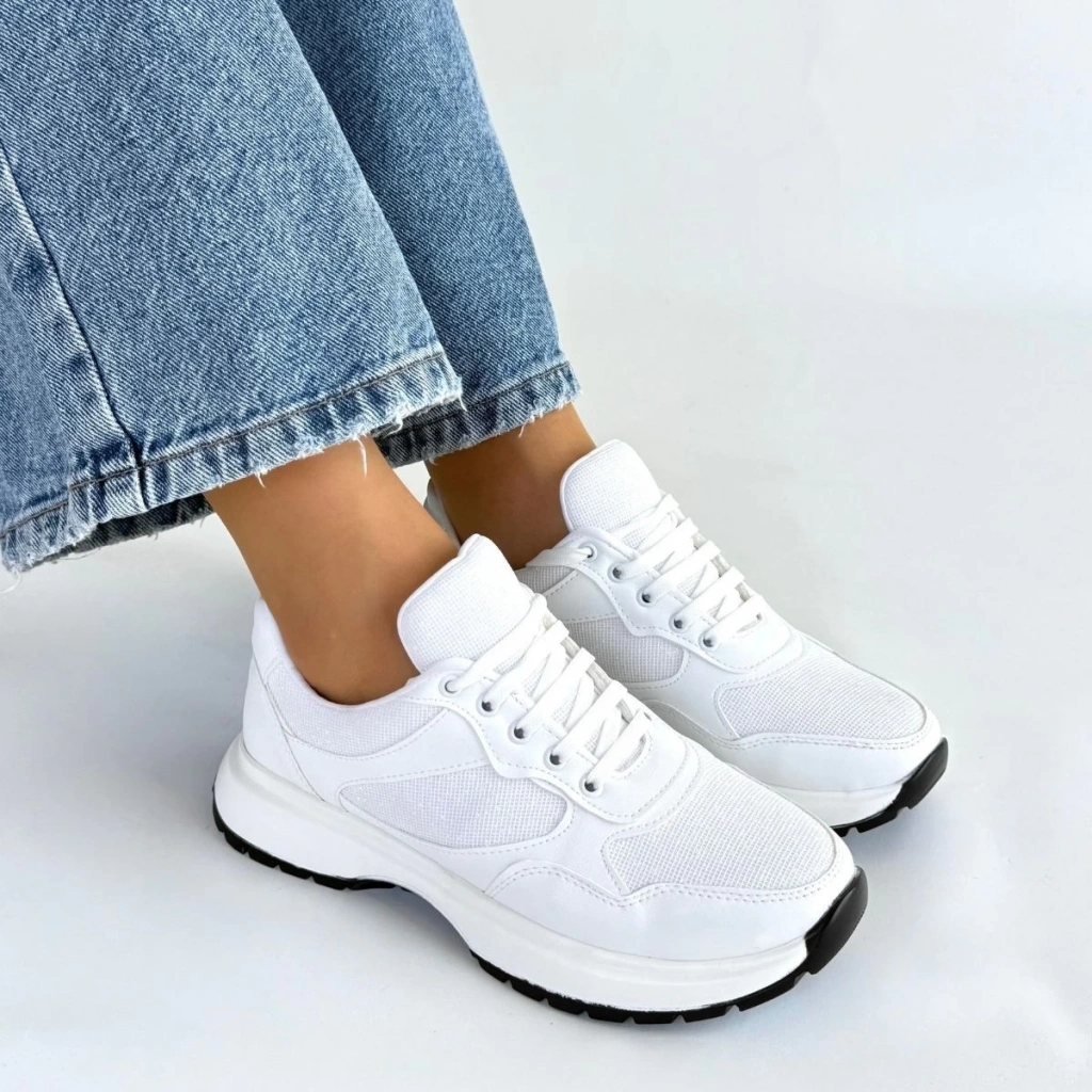 Slar Beyaz Cilt Bağcıklı Spor Ayakkabı